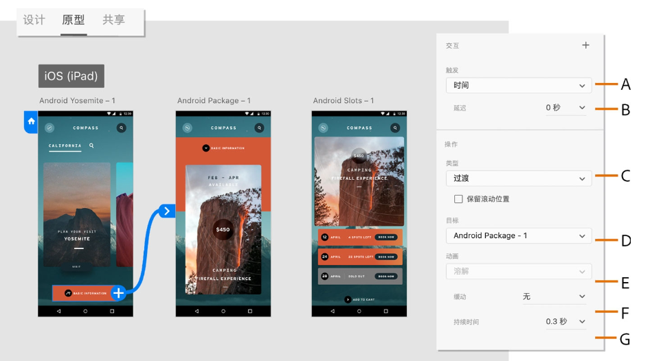 1、交互设计:通过连接画板定义用户体验流程,支持触摸手势、键盘输入、语音命令等触发器,创建逼真原型。